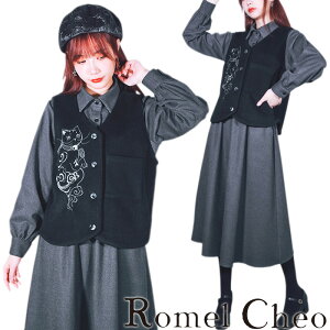 【商品説明】 猫の刺繍がちょっとゆるめの雰囲気をプラスしてくれるベストになります。 メンズライクなデザインに、目をひく猫柄をプラスしたユニークで可愛い1着◎ 前開きで脱ぎ着しやすく、ビッグポケットも機能的...