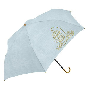裏ブラックコーティングシリーズ/遮光&遮熱に優れた晴雨兼用折りたたみ傘正面1駒に金糸で鳥かごを刺繍しました。共袋のネームバンドには鳥かごから逃げた小鳥さんが!!ストーリーのあるデザインの裏ブラックコーティングの晴雨兼用傘で