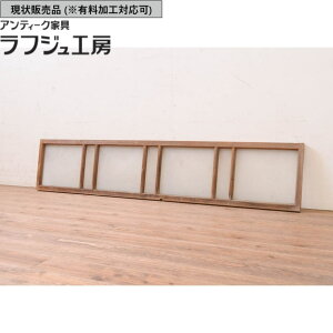 商品詳細 サイズ 高さ:325mm 幅:1685mm 奥行:30mm ※多少の誤差はありますので予めご了承ください。 時代 昭和初期 素材 木製、ガラス 説明 経年による渋い色味が素敵な 昭和初期の片面ガラス入り欄間です。 三本と一本...