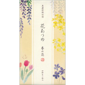 春柄封筒 水彩タッチのチューリップや菜の花がかわいい封筒です。 4柄入りで選ぶのが楽しくなります。 ■サイズ:175×95mm ■4柄8枚入り 郵便番号枠なし ◇ネコポス便可能数:最大8個