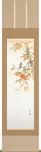 仕様 サイズ 掛け軸寸法:半切立 約横47×縦190cm 収納箱 1.外箱 2.高級桐箱 説明 赤く熟れた柿の実と小鳥の構図は、晩秋の風物詩として、古来より多くの人々に愛され、親しまれております。実り...