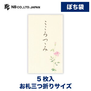 優しい花の絵柄が入った、上品なぽち袋です。普段使いはもちろん、心付けや寸志としても最適です。 生成りの温かみのある紙に、一輪のバラの絵柄が上品な印象を与えます。 縦112×横67mm 5枚入 お札三つ折りサイズ類似商品はこちらエヌビ