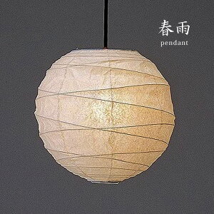 和紙とひごを使って提灯の形に仕上げた和風ペンダントライトです。紙漉きの工程で細かな水滴を落とす「落水」という技法を用い、和紙に繊細な春雨模様を描き入れました。光を通して浮かび上がる春雨の模様は上品かつ落ち着いた風情を