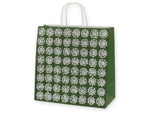 規格:W判 サイズ:幅300×マチ150×高300mm 材質:晒クラフト紙120g 柄:和風 緑・リサイクル重量:52g・手紐:丸紐白