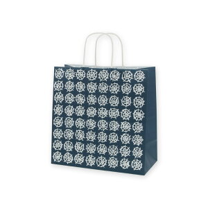 規格:W判 サイズ:幅300×マチ150×高300mm 材質:晒クラフト紙120g 柄:和風 紺・リサイクル重量:52g・手紐:丸紐白