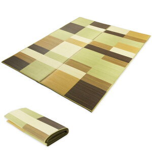 パッチワーク風の和風デザイン 渋めの色使いで和モダンなデザインに織り上げたい草ラグ。い草がもつ湿度調整機能でサラリと爽やかな肌触りは、暑い季節を快適に過ごすには最適なアイテムです。裏面は、不織布で床を傷つけにくくなって