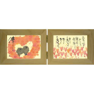 【取寄品】 御木幽石/メッセージアート◎ギフトフレーム(書/絵画)《心願成就 笑門來福》☆和風(額装アート)癒し/お祝いインテリアアート◆癒しの書家『みきゆうせき』のメッセージアートお地蔵さん、ねこ、いぬなどの可愛いイラストと