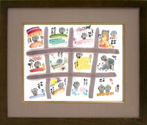 【取寄品】 御木幽石/メッセージアート◎ギフトフレーム(書/絵画)《おめでとう》☆和風(額装アート)癒し/お祝いインテリアアート◆癒しの書家『みきゆうせき』のメッセージアートお地蔵さん、ねこ、いぬなどの可愛いイラストと癒され