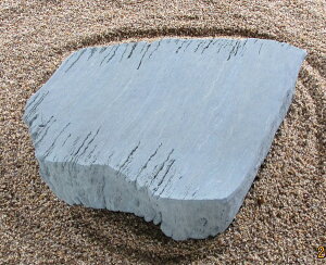 伊予青石【お買い得品】 「庭石・景石」「沓脱石」「物置石」 【簡単設置】 *置きやすい様に下場平らに切っています。 *設置場所に凸凹面の無い様にご注意ください。 *天場(上面):ブラスト仕上 (滑りにくい様に仕上げています。) *