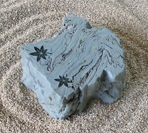 伊予青石 自然石庭石 飾り石 物置石 石の置物 和風花台花瓶台 鉢置き 景石 盆栽 自然石のずっしりとした重みと安定感があり気品のある「物置石」です。 和風、洋風を問わずお部屋や玄関を演出します。 職人