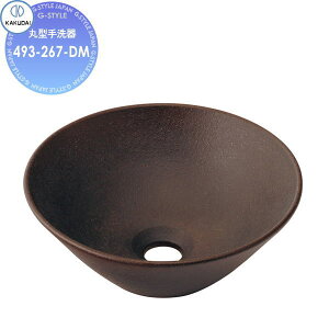 [商品名] 丸型手洗器 [品番] 493-267-DM [カラー] 岩銕(がんてつ) [材質] 陶器製(信楽焼) [備考] ●切込寸法φ90ミリ ●固定金具付き [補足] ※器表面に現れる斑点、ピンホール(小さな穴)、貫