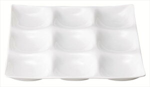 上品で可愛らしい仕切り皿です。 少しづつ9品盛り付けることが出来ます。 【内容量】 1枚 【サイズ】 36.8cm×9cm×高さ:2cm 重量:約480g 仕切り部分/四角部分:5cm×5cm 丸部分:直径5.5cm...
