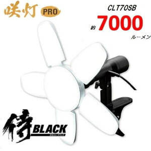 高儀の侍BLACK LEDクリップライト、咲灯 SAKUTO PRO 70w CLT70SBは、プロ仕様の明るいLEDクリップライトです。5枚の羽根を備え、開閉式デザインが特長です。連結コンセントも付いており...