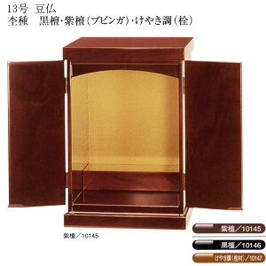 国産品の上置仏壇です。 サイズ:高さ 42.5cm×幅 29.0cm×奥行 27.9cm 材質 杢種 :紫檀 塗装:ラッカー仕上げ5分消し 本体総重量:約4Kg 生産国:日本 ※掲載画像はけやき調になります...