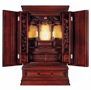 仏壇について 紫檀材をふんだんに使用したお仏壇です 〜調仏壇とは異なり紫檀そのものを使用しています業界用語で練り仏壇と言い、湿気に強く、耐久性に優れています 小型のお仏壇を探しているのならお勧めで、高価ではありますが品質