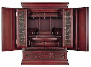 外寸法:高さ131.5cm×巾68cm×奥行48cm内部寸法:上段からなげし彫刻までの高さ27.5cm 上段から天井までの高さ39cm材質:紫檀系(グラナディロ)正面表面材:笠・台輪:紫檀系(グラナディロ)厚板貼り ...