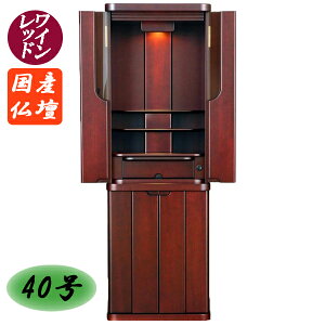 ◇◆◇送料無料◇◆◇ ワインレッド色の家具調仏壇40号です。 主要表面材:シルバーハート 支輪・台輪:薄板貼 戸板 :薄板貼 主要芯材 :MDF 塗装/仕上 :ウレタン/鏡面 サイズ :高1200×幅400×奥行330mm(須弥...