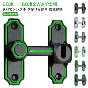 ドアロック 引き戸 鍵 後付け 穴あけ不要 90度 180度 引き戸用鍵 亜鉛合金 ドア留め金ロック 後付け 回転式 フリップラッチロック スライドロック 窓ロック と