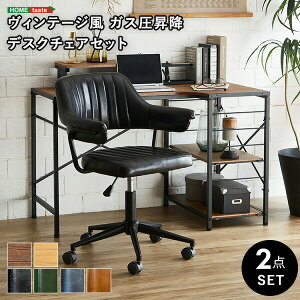 デスクチェアセット パソコンデスク ヴィンテージデスク 作業台 PCデスク テレワーク コンパクト 勉強机 鉄脚 レザー デスクチェア 回転式 ガス圧昇降 PCチェア チェア