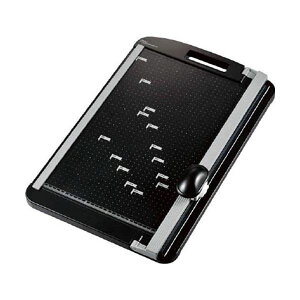 ●持ち運びに便利 取っ手付きのデザインで持ち運びやすい。 ●紙あて定規(マグネット式)付き 任意のサイズに容易にセット出来ます。 ●刃の交換がカンタン ロックボタンを押すだけで、キャップを簡単に外せます。 ●見やすい罫線