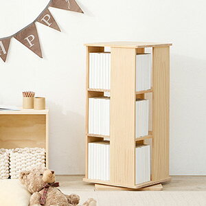 天然木パイン 回転ブックラック 3段タイプ 360度回転するので本が探しやすく、省スペースながらも大容量な回転式の本棚です。天然木パイン材を使用で、無塗装なので、経年変化を楽しんだり、ペンキを塗