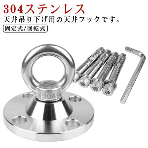 天井吊り下げ用の天井フックです。固定タイプと回転タイプの2種類ございます。ステンレス製のため錆びることなく屋内だけじゃなく屋外でも使用可能。エアリアルヨガ ハンモック ハンキングチェア サンドバッグ、 サスペンショントレ