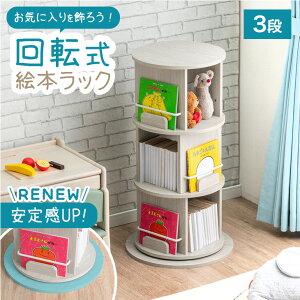 回転式本棚 スリム 絵本ラック 本棚 回転書棚 木製 木目 本 絵本 漫画 コミック おもちゃ ギフト 贈り物 子ども 子供用 白 ホワイト ナチュラル グレー 北欧