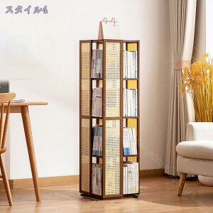 材質MDF(プリント紙) カラーナチュラル・ブラウン 生産国日本 用途本棚 書棚 屋内収納 国産 日本製 ・360度回転する5段の本棚 ・多目的収納ラック ・家具の産地で有名な福岡県大川市で一本一本丁寧に製...
