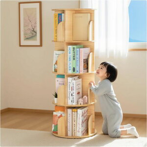 【大容量収納スペース】各段に約30冊収納可能な4段構造で、絵本やコミックから雑誌まで幅広く整理可能。360度回転機能により全方向からアクセスでき、お子様の読書習慣をサポートする理想的な収納ソリューションです。 【スムーズ回転機構】高品...