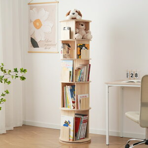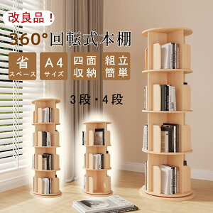 無垢材 回転式本棚 飾り棚 絵本棚 360°回転本棚 コミック収納棚 本棚 大容量 回転ラック 組立簡単 省スペース 収納ラック 2段3段4段5段