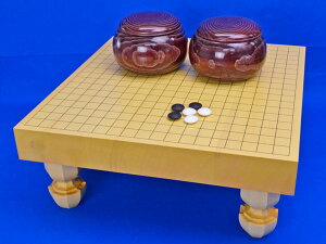 囲碁盤のサイズ:横幅42cm×奥行45cm 厚み約2寸 ■碁石:硬質ガラス碁石 新生・竹(厚み約9mm) ■碁笥:木製碁笥 栗・特大 木製のヒバ2寸ハギ足付碁盤と硬質ガラス碁石