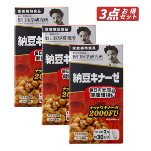 商品名: 野口医学研究所 納豆2000FU 納豆キナーゼ 60粒(約30日分) ×3個セット 日本の伝統食品「納豆」のネバネバに含まれる酵素が「ナットウキナーゼ」です。本品は、ナットウキナーゼを2,000FU(1日目安量)配合しました...