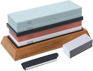 商品コード2b9dk4xht4商品名包丁研ぎ石 7点セット 砥石 400/1000 3000/8000 両面 研ぎ石 シリカゲルパッド 竹ベース ポジショナー 白補正石 付き 滑り止め 面直し 角度固定ホルダー 包丁 ナイフ はさみ ...