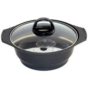 鍋としてはもちろん、目皿が付いているので茶碗蒸しなどの蒸し料理もできます♪鍋本体とステンレス底板の間に空気の層を設けることで、熱が満遍なく均一に伝わるので八分目のお湯なら麺類などを茹でても噴きこぼれません。サイズ本体: