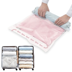 押すだけで衣類を簡単に圧縮できる衣類用圧縮袋 中身にあわせて選べる3サイズ●かさばる衣類をコンパクトに圧縮押すだけで簡単に使用できる圧縮袋です。荷物が多くなりがちな旅行やアウトドア、ご自宅での衣類の整理にもおすすめです