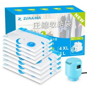 【日常使いにちょうどいいサイズ!】40x60cmx5枚35x50cmx5枚の計10枚に、コードレス電動ポンプが付いた便利なセットです。Tシャツやセーター、パーカーなどの衣類から、薄手の布団・毛布までしっかり収納可能。シーズンオフの服や...