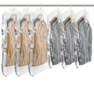 収納に大活躍:サイズ:105x70cm(3枚)、135x70cm(3枚)。吊り下げ圧縮袋はオーバーコート、ジャケット、洋服など簡単に収め、収納スペースを省き、クロゼットの衣類をコンパクトに収納できます...