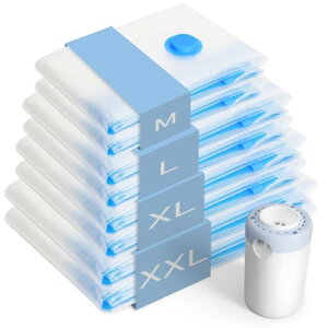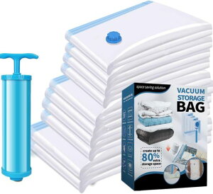 【10枚セット携帯用ハンドポンプ付き】当社の真空圧縮袋セットには、小物用(40x60cm)x3枚、衣類用(50x70cm)x3枚、布団用(60x80cm)x2枚、大型用(80x100cm)x2枚の合計...