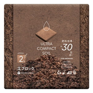 ココヤシから生まれた肥料入り超圧縮培養土 ロングセラーの土ブロックに肥料が入って新登場 必要なときに水をかけるだけでふかふかの培養土に サイズ:190×100×45-55mm 重量:550-680g 土容量:8L(復元) プロトリーフ
