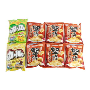 ポテトチップス 九州しょうゆ味 / 菓子のアソート4種:計11点セット 内容量:かっぱえびせん2点 / じゃがりこ4点 / かたあげポテト2点 / ポテトチップス3点 直射日光 高温多湿を避けて保存