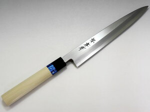 発売以来爆発的な人気を博しています『グランドシェフ 切付柳刃260』の左利き用です。 堺孝行(さかいたかゆき)のブランドで知られる、刃物の本場堺の青木刃物製作所の人気商品。 和包丁が特に有名ですが、よく切れて、研ぎやすく...