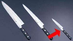 商品名 堺菊守スタンダード(口金付・本刃付加工) ペティナイフ150mm ●特殊ステンレス鋼(モリブデン、バナジウム含有)を使用。研ぎやすく使いやすい。サビに強い特殊ステンレス鋼の普及品。