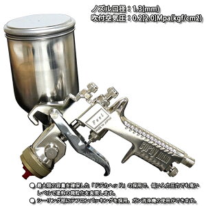 用途 金属塗装 家具塗装 セット内容 ガン 400ccカップ エアー用プラグ スパナ ブラシ 仕様 塗料ノズル径1.3mm 空気使用量約90L/min パターン開き150mm 塗料噴出量 約160mL/min...