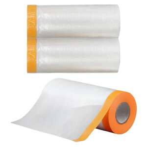 【汚れ防止】このテープ付き養生シートは、マスキングテープの下に長い透明なフィルムが付いているので、汚れたくない広い範囲の領域を覆うことができます。改築とリノベーション、自動車塗装、塗装、内装の清掃/清掃、DIY...