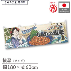 人気和風シリーズから販促向けの横幕が新登場!壁掛けやテーブルの腰幕など、さまざまな用途にお使いいただけます。 【仕様】 サイズ:幅 約180cm、丈 約60cm 素材:ポリエステル 100% 生産地:群馬県桐生市 <b