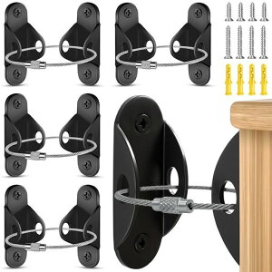 セット内容:転倒防止金具4組セット(含ま:短いネジ(2個)4組x長いネジ(2個)4組x拡張プラグ(2個)4組xステンレス紐4個xベース(2個)4組);素材:鉄+ステンレス;重量:24.5g;取り付け方法:ミシン目;適用範囲:各種キャビ...