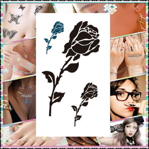 「黒薔薇 花 」お洒落れ個性派に必見のタトゥーシール! インスタに盛れる自分をアピール♪ オールシーズンで貼る場所でチラ見せアイテムなど使い方も個性的! ※使用説明書は同封しておりませんので、ご使用方法はコチラの商品ペー