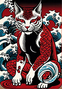 お部屋のインテリアとしてもお使いいただけます。検索用: 室内 飾り 布 インテリア タペストリー 昭和レトロ 入れ墨風 部屋 アート グラフィック 猫 刺青 波 浮世絵 妖怪 タペストリー 大きい 男気 和柄 和風 日本画風 タトゥー...