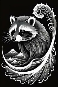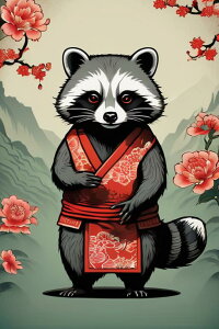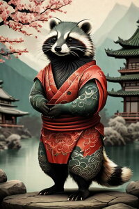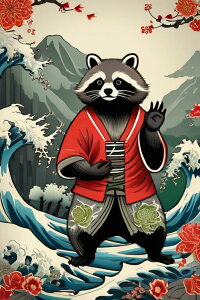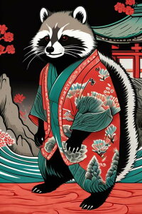 お部屋のインテリアとしてもお使いいただけます。検索用: 室内 飾り 布 インテリア タペストリー 昭和レトロ 入れ墨風 部屋 アート グラフィック アライグマ 着物 花 日本画 擬人化 タペストリー 和柄 和風 大きい 男気 日本画風...