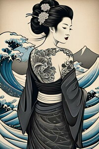 お部屋のインテリアとしてもお使いいただけます。検索用: 室内 飾り 布 インテリア タペストリー 昭和レトロ 入れ墨風 部屋 アート グラフィック 芸者 着物 波 刺青 日本画 タペストリー 和柄 和風 大きい 男気 日本画風 入れ墨...